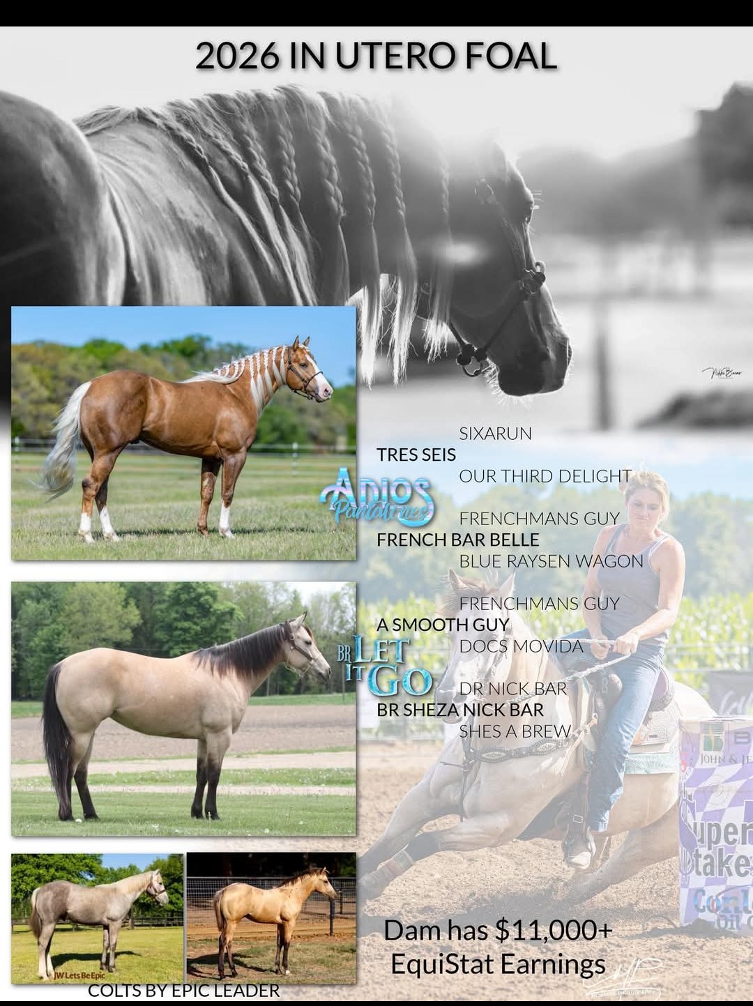 Disciplines: Barrel Racing, Pole Bending, Roping