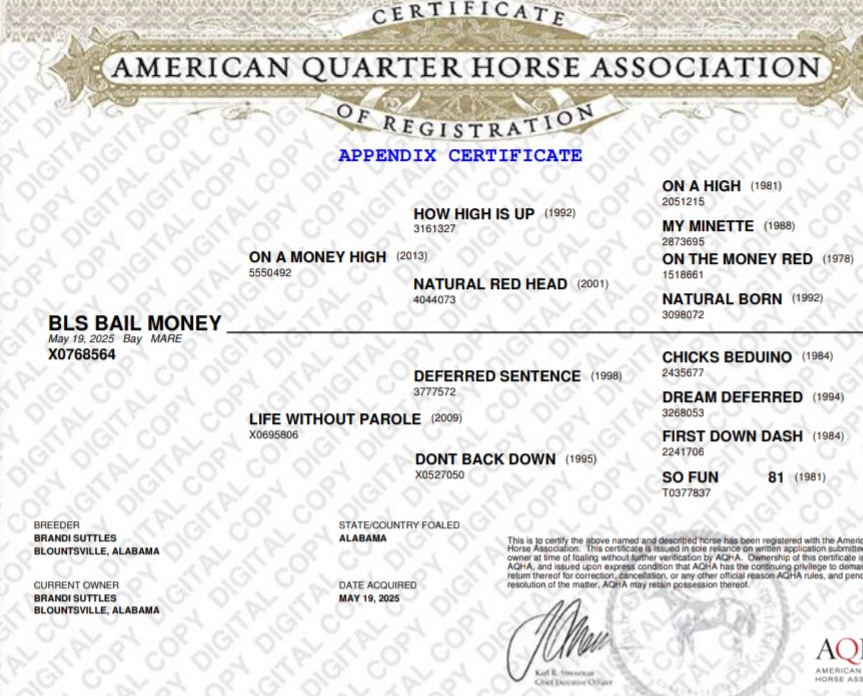 Super shapely running bred filly