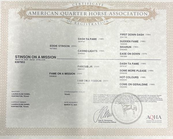 Eddie Stinson x Fame on A Mission 2025 Stud Colt